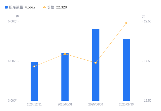 近一年(2024年9月30日至2025年9月30日),国瓷材料A股股东户数从3.26万户,增加至4.56万户,增幅39.91%,区间股价上涨27.83%。