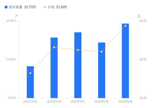 近一年(2024年9月30日至2025年9月30日),全志科技A股股东户数从8.35万户,增加至15.73万户,增幅88.37%,区间股价上涨187.28%。
