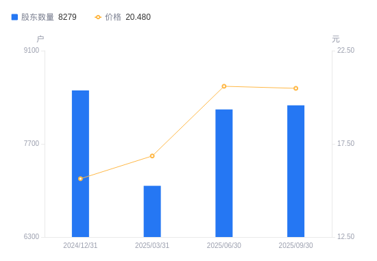 近一年(2024年9月30日至2025年9月30日),东南电子A股股东户数从8184户,增加至8279户,增幅1.16%,区间股价上涨47.56%。