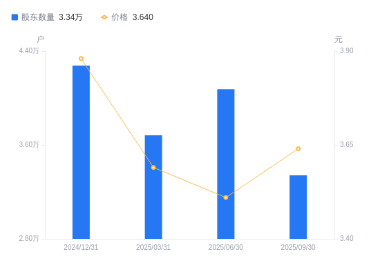 近一年(2024年9月30日至2025年9月30日),三湘印象A股股东户数从3.62万户,减低至3.34万户,降幅7.65%,区间股价下跌1.09%。
