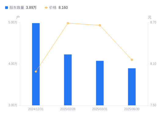 10月27日消息,数据显示,截至2025年9月30日,力合科创A股股东总户数为3.79万户,较上期(2025年6月30日)减少1037户,降幅2.66%。公司最新A股总股本为12.11亿股,其中流通A股12.04亿股,户均持有流通A股数量为3.18万股,较上期增加845.77股,增幅2.74%;户均持流通A股市值30.4万元,较上期增加5.17万元,增幅20.49%。