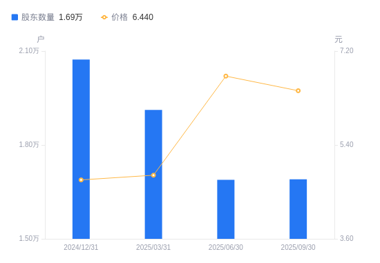 10月27日消息,数据显示,截至2025年9月30日,ST加加A股股东总户数为1.69万户,较上期(2025年6月30日)增加15户,增幅0.09%。公司最新A股总股本为11.52亿股,其中流通A股11.52亿股,户均持有流通A股数量为6.82万股,较上期减少60.55股,降幅0.09%;户均持流通A股市值43.89万元,较上期减少1.95万元,降幅4.25%。
