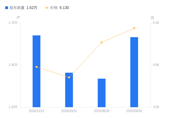 10月27日消息,数据显示,截至2025年9月30日,科隆股份A股股东总户数为1.62万户,较上期(2025年6月30日)增加2462户,增幅17.98%。公司最新A股总股本为2.84亿股,其中流通A股2.19亿股,户均持有流通A股数量为1.35万股,较上期减少2436.09股,降幅15.24%;户均持流通A股市值8.3万元,较上期减少7261.39元,降幅8.04%。