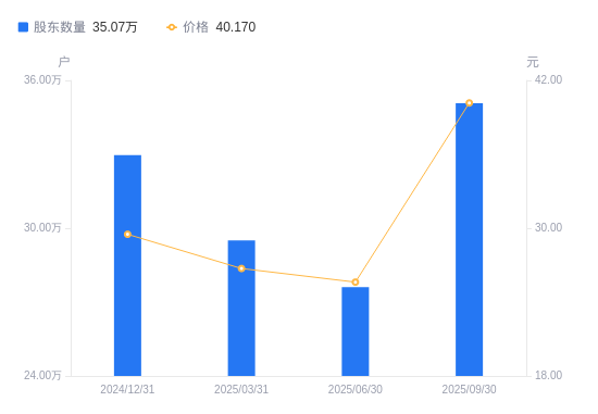 近一年(2024年9月30日至2025年9月30日),通富微电A股股东户数从23.17万户,增加至35.07万户,增幅51.32%,区间股价上涨92.62%。