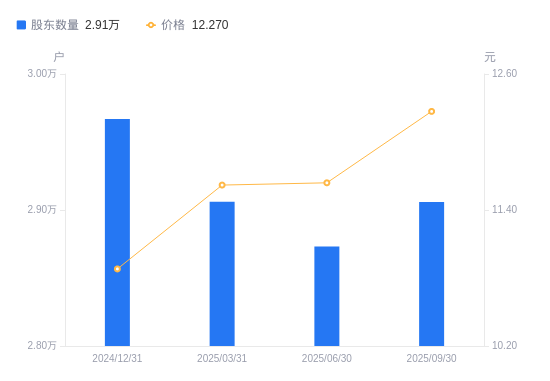 近一年(2024年9月30日至2025年9月30日),思特奇A股股东户数从3.5万户,减低至2.91万户,降幅17.08%,区间股价上涨11.55%。