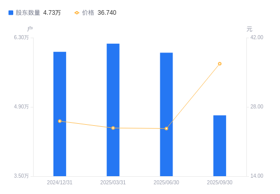 近一年(2024年9月30日至2025年9月30日),英科医疗A股股东户数从5.5万户,减低至4.73万户,降幅13.92%,区间股价上涨53.13%。
