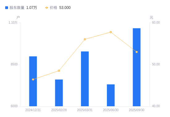 近一年(2024年9月30日至2025年9月30日),瑞丰新材A股股东户数从8348户,增加至1.07万户,增幅27.79%,区间股价上涨30.66%。