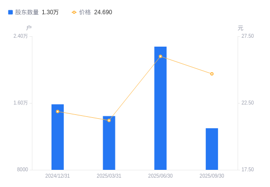 近一年(2024年9月30日至2025年9月30日),瑞玛精密A股股东户数从1.94万户,减低至1.3万户,降幅33.12%,区间股价上涨9.10%。