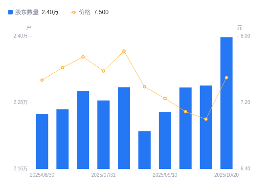 近一年(2024年10月31日至2025年10月20日),博深股份A股股东户数从2.2万户,增加至2.4万户,增幅9.18%,区间股价上涨9.97%。