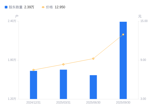 近一年(2024年9月30日至2025年9月30日),诚意药业A股股东户数从1.63万户,增加至2.39万户,增幅46.33%,区间股价上涨91.85%。