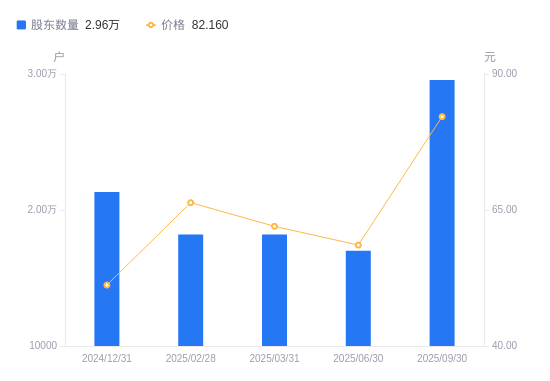 近一年(2024年9月30日至2025年9月30日),天岳先进A股股东户数从1.38万户,增加至2.96万户,增幅113.64%,区间股价上涨54.73%。