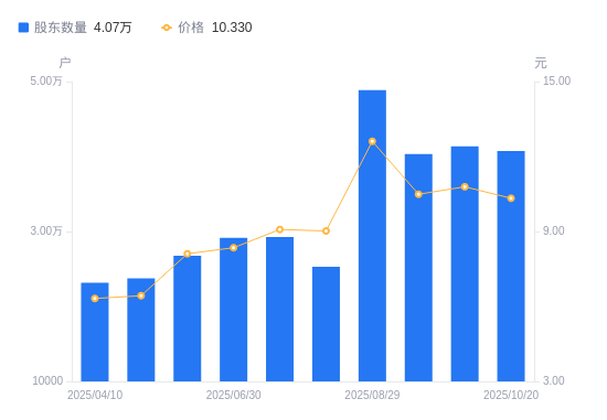 近一年(2024年10月31日至2025年10月20日),翔鹭钨业A股股东户数从2.24万户,增加至4.07万户,增幅82.00%,区间股价上涨65.28%。