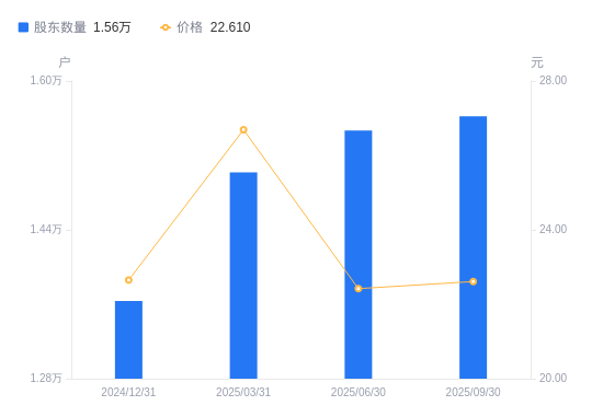 近一年(2024年9月30日至2025年9月30日),莱克电气A股股东户数从1.29万户,增加至1.56万户,增幅21.32%,区间股价上涨10.02%。