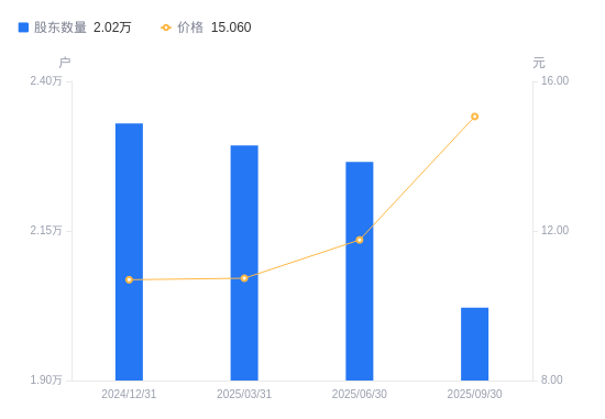 近一年(2024年9月30日至2025年9月30日),海容冷链A股股东户数从2.26万户,减低至2.02万户,降幅10.42%,区间股价上涨46.28%。