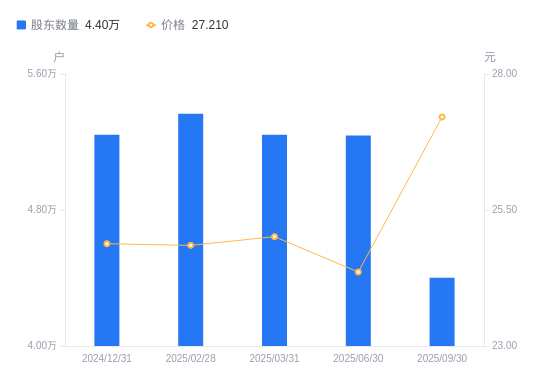 近一年(2024年9月30日至2025年9月30日),宇通客车A股股东户数从5.07万户,减低至4.4万户,降幅13.18%,区间股价上涨19.66%。