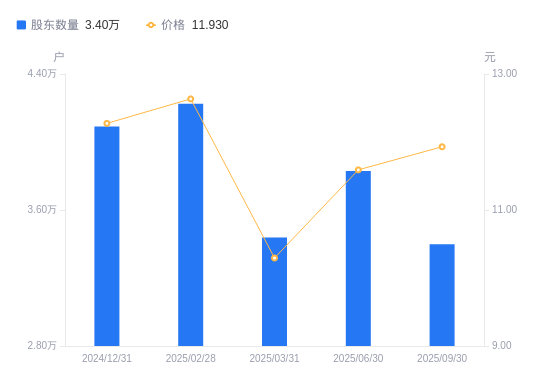 近一年(2024年9月30日至2025年9月30日),桂发祥A股股东户数从1.96万户,增加至3.4万户,增幅73.05%,区间股价上涨55.26%。