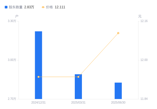 10月28日消息,数据显示,截至2025年9月30日,国脉文化A股股东总户数为3.7万户,较上期(2025年6月30日)增加8771户,增幅31.03%。公司最新A股总股本为7.96亿股,其中流通A股7.96亿股,户均持有流通A股数量为2.15万股,较上期减少6668.14股,降幅23.68%;户均持流通A股市值30.62万元,较上期减少3.48万元,降幅10.21%。