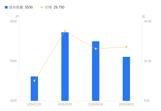 近一年(2024年9月30日至2025年9月30日),鸿泉物联A股股东户数从6022户,减低至5530户,降幅8.17%,区间股价上涨115.58%。