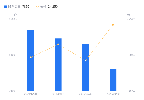 近一年(2024年9月30日至2025年9月30日),浩瀚深度A股股东户数从8325户,减低至7875户,降幅5.41%,区间股价上涨60.48%。