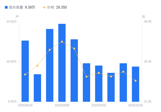 10月28日消息,数据显示,截至2025年9月30日,建设工业A股股东总户数为8.61万户,较上期(2025年9月19日)减少9086户,降幅9.54%。公司最新A股总股本为10.33亿股,其中流通A股4.03亿股,户均持有流通A股数量为4680.97股,较上期增加446.76股,增幅10.55%;户均持流通A股市值13.97万元,较上期增加8080.81元,增幅6.14%。