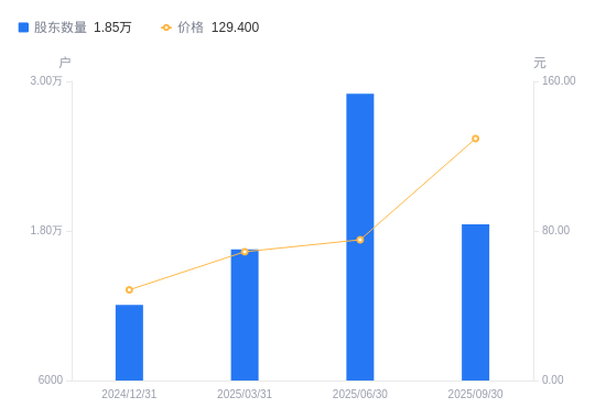 10月28日消息,数据显示,截至2025年9月30日,中坚科技A股股东总户数为1.85万户,较上期(2025年6月30日)减少1.05万户,降幅36.12%。公司最新A股总股本为1.85亿股,其中流通A股1.66亿股,户均持有流通A股数量为8946.17股,较上期增加3231.8股,增幅56.56%;户均持流通A股市值115.76万元,较上期增加72.75万元,增幅169.14%。