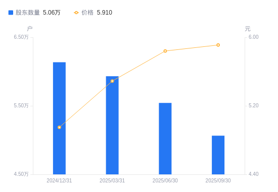 近一年(2024年9月30日至2025年9月30日),赛象科技A股股东户数从6万户,减低至5.06万户,降幅15.67%,区间股价上涨41.42%。