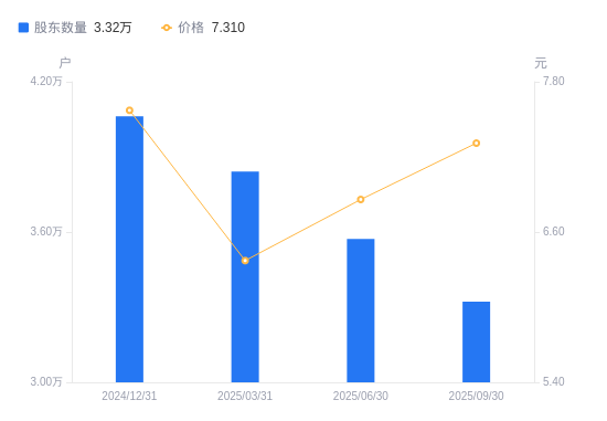 近一年(2024年9月30日至2025年9月30日),北京科锐A股股东户数从4.54万户,减低至3.32万户,降幅26.86%,区间股价上涨40.25%。