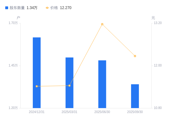 10月28日消息,数据显示,截至2025年9月30日,尚品宅配A股股东总户数为1.34万户,较上期(2025年6月30日)减少1408户,降幅9.51%。公司最新A股总股本为2.25亿股,其中流通A股1.55亿股,户均持有流通A股数量为1.16万股,较上期增加1099.75股,增幅10.51%;户均持流通A股市值14.19万元,较上期增加4073.5元,增幅2.95%。