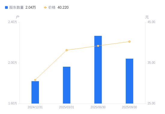 近一年(2024年9月30日至2025年9月30日),一博科技A股股东户数从1.61万户,增加至2.04万户,增幅26.56%,区间股价上涨76.78%。