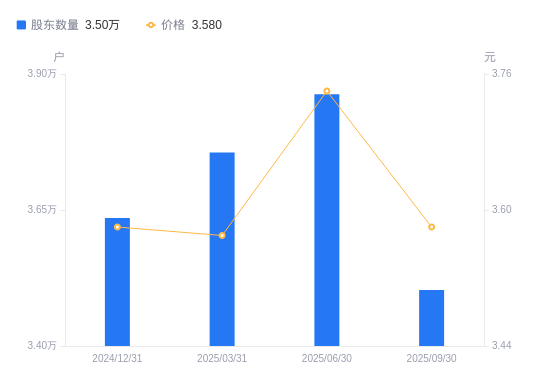 近一年(2024年9月30日至2025年9月30日),浙文影业A股股东户数从3.86万户,减低至3.5万户,降幅9.27%,区间股价上涨8.16%。