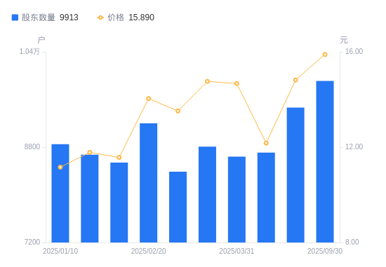 近一年(2024年9月30日至2025年9月30日),瀚川智能A股股东户数从9161户,增加至9913户,增幅8.21%,区间股价上涨58.58%。