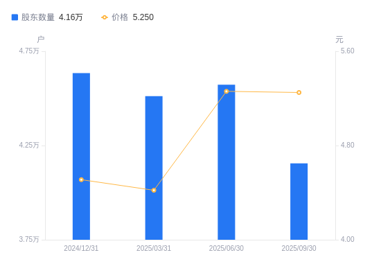 近一年(2024年9月30日至2025年9月30日),金龙机电A股股东户数从3.94万户,增加至4.16万户,增幅5.37%,区间股价上涨38.89%。