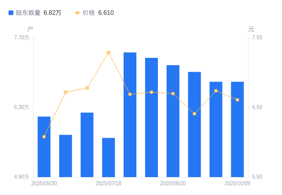 近一年(2024年9月30日至2025年9月30日),海南高速A股股东户数从5.8万户,增加至6.82万户,增幅17.47%,区间股价上涨42.19%。