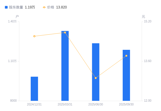 近一年(2024年9月30日至2025年9月30日),普门科技A股股东户数从7900户,增加至1.19万户,增幅50.11%,区间股价下跌5.07%。