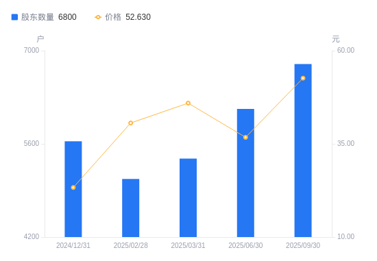 近一年(2024年9月30日至2025年9月30日),华曙高科A股股东户数从6228户,增加至6800户,增幅9.18%,区间股价上涨206.86%。