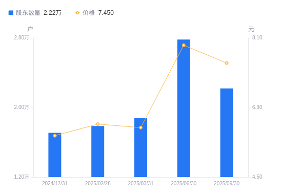 近一年(2024年9月30日至2025年9月30日),金明精机A股股东户数从2.6万户,减低至2.22万户,降幅14.71%,区间股价上涨36.20%。