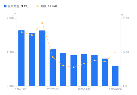 近一年(2024年9月30日至2025年9月30日),ST中青宝A股股东户数从5.14万户,减低至3.49万户,降幅32.19%,区间股价下跌4.47%。