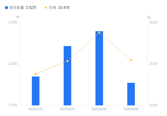 近一年(2024年9月30日至2025年9月30日),金运激光A股股东户数从1.32万户,增加至2.02万户,增幅52.69%,区间股价上涨104.36%。