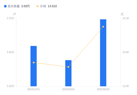 10月28日消息,数据显示,截至2025年9月30日,永安期货A股股东总户数为3.95万户,较上期(2025年6月30日)增加2537户,增幅6.87%。公司最新A股总股本为14.56亿股,其中流通A股14.56亿股,户均持有流通A股数量为3.69万股,较上期减少2532.66股,降幅6.43%;户均持流通A股市值55.86万元,较上期减少2.5万元,降幅4.28%。