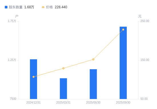 近一年(2024年9月30日至2025年9月30日),安集科技A股股东户数从8840户,增加至1.68万户,增幅89.97%,区间股价上涨148.43%。