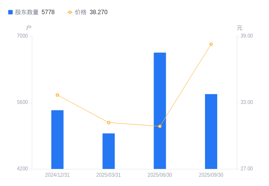 近一年(2024年9月30日至2025年9月30日),鼎际得A股股东户数从5761户,增加至5778户,增幅0.30%,区间股价上涨35.28%。