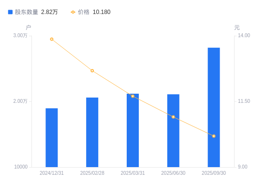 10月28日消息,数据显示,截至2025年9月30日,伟星股份A股股东总户数为2.82万户,较上期(2025年6月30日)增加7092户,增幅33.64%。公司最新A股总股本为11.69亿股,其中流通A股10.17亿股,户均持有流通A股数量为3.61万股,较上期减少1.21万股,降幅25.17%;户均持流通A股市值36.74万元,较上期减少15.88万元,降幅30.18%。