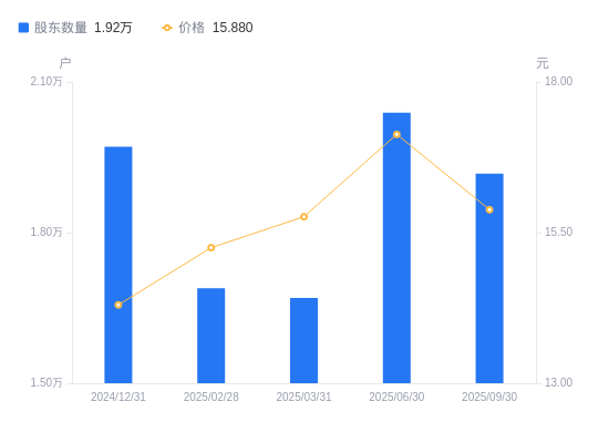 近一年(2024年9月30日至2025年9月30日),通行宝A股股东户数从1.54万户,增加至1.92万户,增幅24.15%,区间股价上涨16.03%。