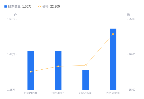 近一年(2024年9月30日至2025年9月30日),英集芯A股股东户数从1.26万户,增加至1.56万户,增幅23.51%,区间股价上涨95.71%。