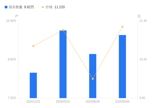 10月28日消息,数据显示,截至2025年9月30日,东软集团A股股东总户数为9.82万户,较上期(2025年6月30日)增加7875户,增幅8.72%。公司最新A股总股本为11.92亿股,其中流通A股11.92亿股,户均持有流通A股数量为1.21万股,较上期减少1223.49股,降幅9.15%;户均持流通A股市值13.63万元,较上期增加7929.49元,增幅6.18%。