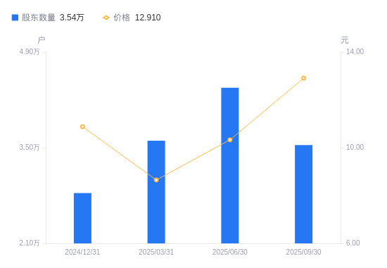 10月28日消息,数据显示,截至2025年9月30日,诺普信A股股东总户数为3.54万户,较上期(2025年6月30日)减少8384户,降幅19.15%。公司最新A股总股本为10.05亿股,其中流通A股7.86亿股,户均持有流通A股数量为2.22万股,较上期增加4250.12股,增幅23.68%;户均持流通A股市值28.65万元,较上期增加10.12万元,增幅54.58%。
