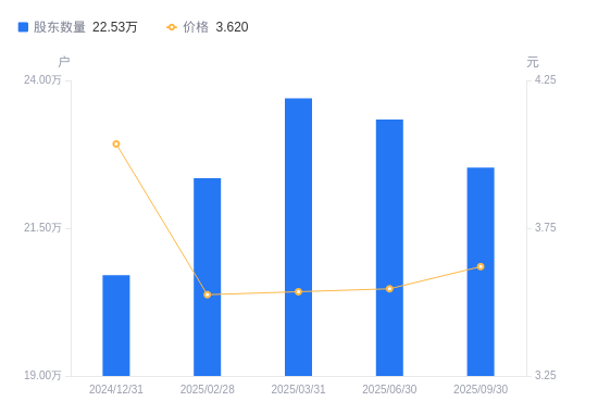 近一年(2024年9月30日至2025年9月30日),中国广核A股股东户数从19.65万户,增加至22.53万户,增幅14.65%,区间股价下跌11.81%。