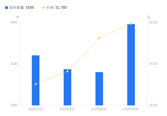 近一年(2024年9月30日至2025年9月30日),澳华内镜A股股东户数从3811户,增加至5549户,增幅45.60%,区间股价上涨25.58%。