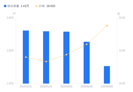 近一年(2024年9月30日至2025年9月30日),华康股份A股股东户数从1.46万户,减低至1.41万户,降幅3.21%,区间股价上涨36.16%。