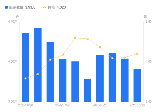近一年(2024年10月31日至2025年10月20日),三钢闽光A股股东户数从4.9万户,减低至3.93万户,降幅19.96%,区间股价上涨27.06%。